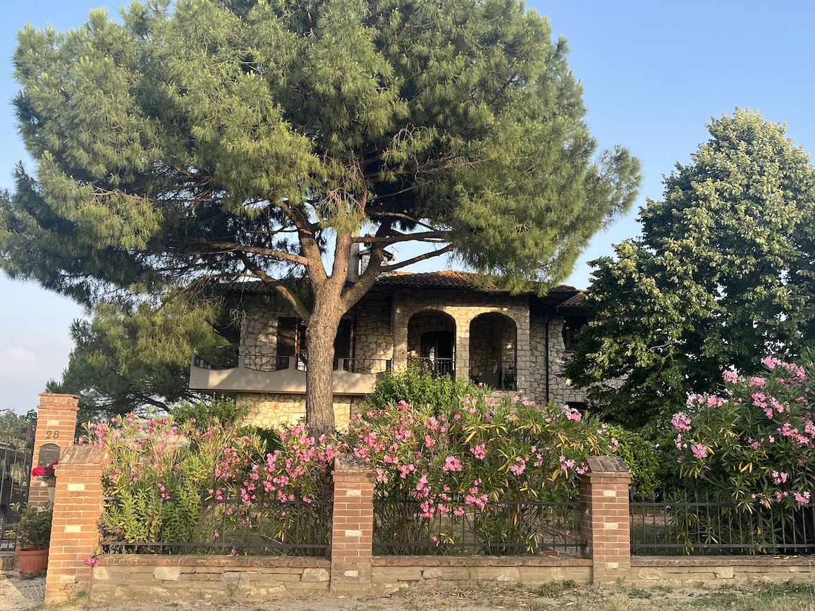 Guests have their own outdoor areas – the terraces mentioned above, the olive grove, the area around the pool including the pergola and a gravelled area, plus the large gravelled area in front of the Textile studio. We never use the swimming pool ourselves, so you wouldn’t be sharing it with us.